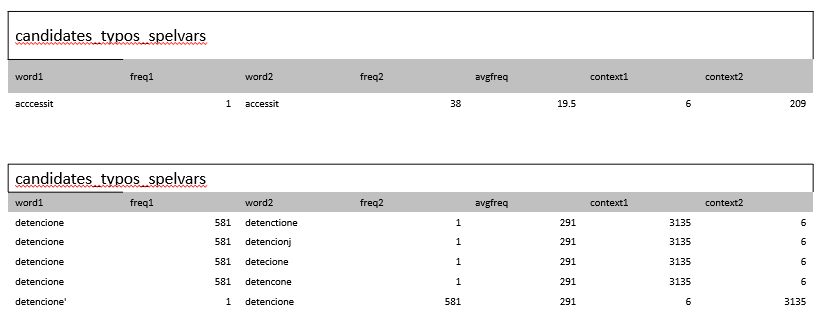 Text Curation and Formatting XML schema design and encodingQuality Control: large-scale automatic XML validation and repair Metadata production e.g. indexes, terminologyIdentification of spelling variation and typos (see some example results below from the LACR project)